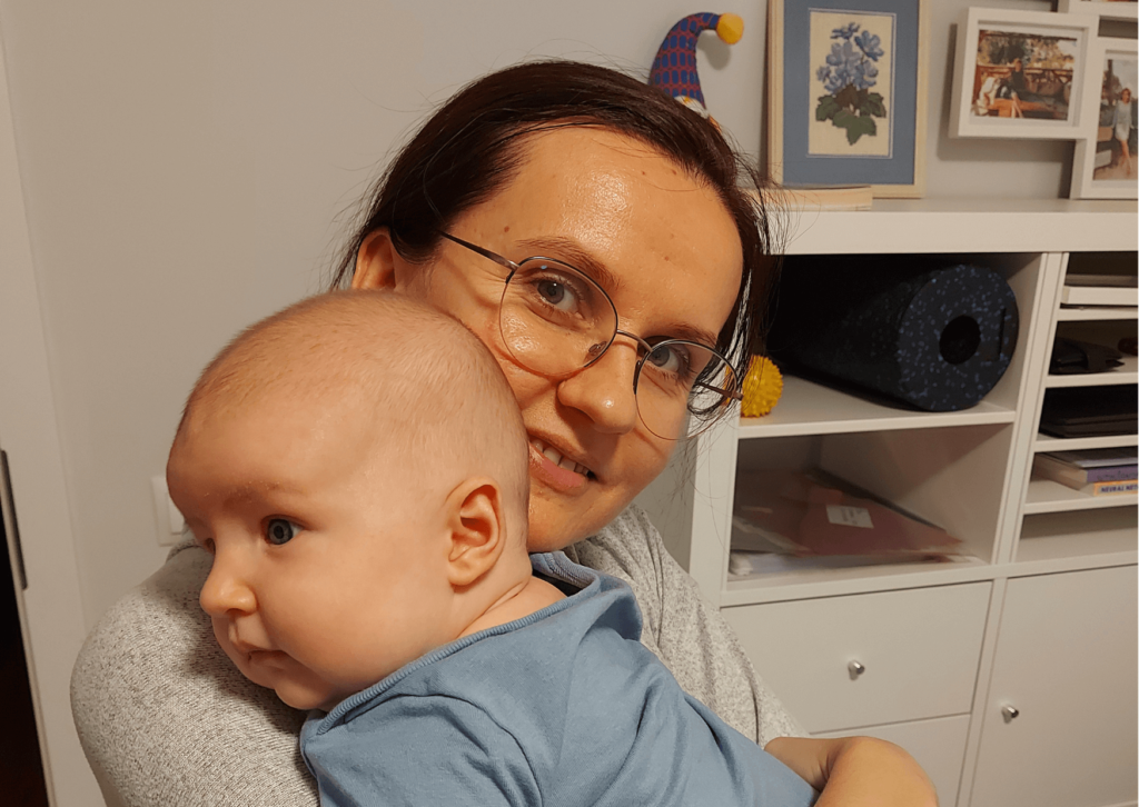 W pozycji wertykalnej o 8:53 urodziła się córka – Blanka. Podczas porodu nie myślałam nawet przez chwilę o znieczuleniu, o tym, że nie dam rady. Byłam skupiona na celu, wiedziałam, że potrzebuję skurczy. Wiedziałam, że one pomogą dziecku wyjść na świat. Potrzebowałam fali, która przechodziła przez moje ciało. Nie myślałam o tym, że fala to ból. To było uczucie silne, ale nie bolesne. Potrzebowałam wsparcia bliskich podczas fali, potrzebowałam przytulenia. Jestem wdzięczna, że miałam wspierające otoczenie. Bez nich byłoby mi o wiele trudniej.